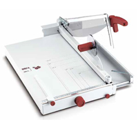 - Front gauge with integrated narrow strip cutting device and fold-away paper supports