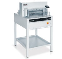 Professional guillotine with EASY-CUT, automatic clamp, programmable power backgauge with touch pad and safety guards (front and rear).